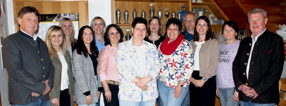 Vorne von links: 2. Bürgermeister Andreas Altmann, Manuela Flierl, Sabrina Meier, Claudia Neidl, 2. Vorsitzende Simone Schönberger, 1. Vorsitzende Anita Graf, Kassierin Carina Pröls, Anita Polleti und stellvertretenden Kreisverbandsvorsitzenden Gerhard Lenhart