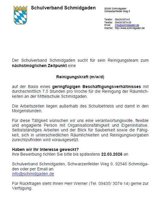 Stellenausschreibung Schulverband - Reinigungskraft (m/w/d)